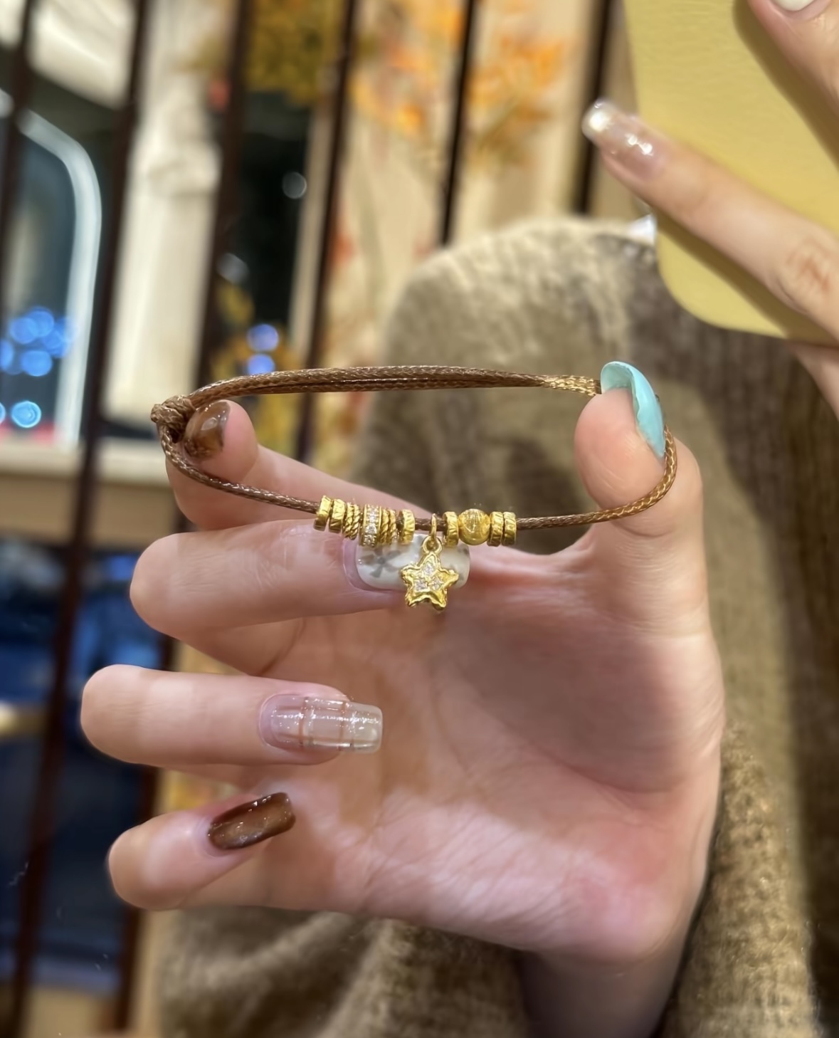 Elevate your everyday with this 1.8g pure gold star & bead cord bracelet. Crafted from 1.8 grams of solid 24K gold, it features a sparkling diamond-encrusted star charm and textured gold beads, strung on a durable, adjustable brown cord. The lightweight design ensures comfortable all-day wear, while the adjustable knot guarantees a perfect fit for any wrist. More than just jewelry, it’s a wearable talisman of hope and good fortune, blending dainty style with timeless luxury. Ideal for layering or wearing alone, it adds a touch of understated elegance to any outfit.