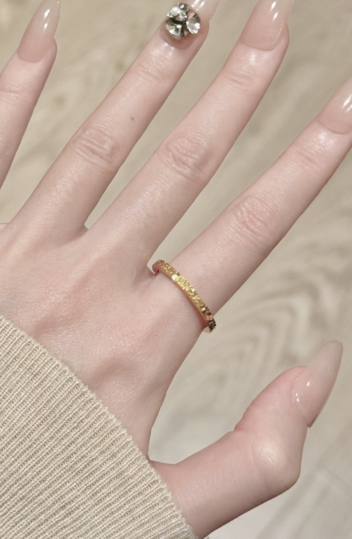 Elevate your everyday with this 1g pure gold hammered band ring. Crafted from 1 gram of solid 24K gold, its textured hammered finish catches the light with every movement, creating a unique, shimmering effect. The lightweight, minimalist design makes it perfect for stacking with other rings or wearing alone as a statement of understated luxury. Comfortable enough for all-day wear, this ring is more than just jewelry—it’s a timeless piece that blends modern style with the enduring allure of pure gold.