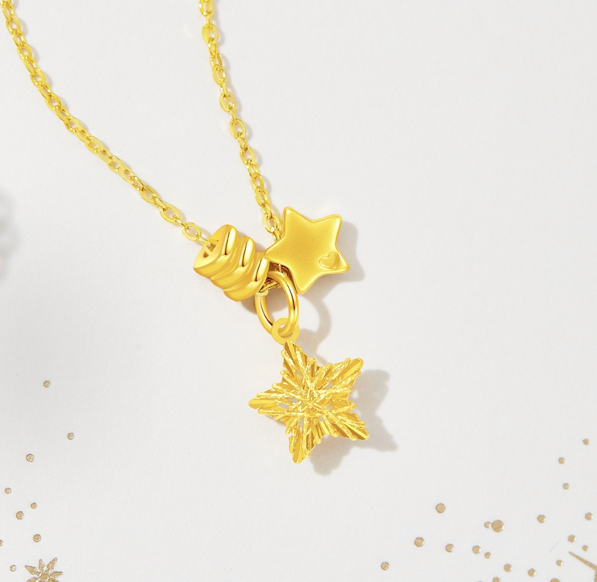 Featuring a charming "Three-Star Unity" design, this necklace combines a matte spiral bead, a sweet solid star with heart detail, and an exquisite hollow crystal star. The unique openwork texture is lightweight and see-through, boasting a dazzling diamond-like shimmer under the light. It sways gently with every movement, instantly elevating the vibe to the max!