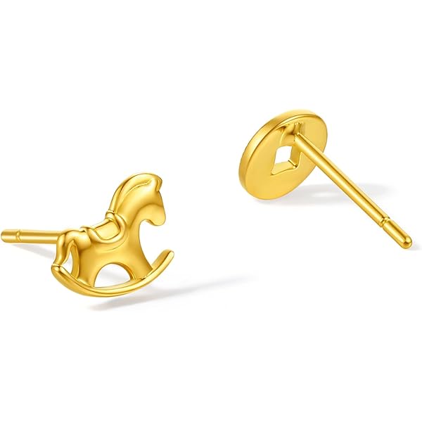 Handcrafted with precision. Each 24K gold asymmetrical earring is handcrafted with exquisite craftsmanship, which is the best proof of our pursuit of quality and excellence. Ideal for Her: Comes with a beautiful jewelry box, best present for your friends and family. Express your love and appreciation with our gorgeous gold stud earrings, ideal for friends, wife, partners, mothers and daughters for special days such as birthdays, anniversaries, New Year's Day, Valentine's Day, Mardi Gras, Easter, Mother's Day, or any occasion. Trendy Elegant Gold earrings: Rocking horse(6.4*7.6*0.8mm) earrings effortlessly complement casual outfits, showcasing a playful and carefree everyday style. Paired with coin (5.8*1mm) stud on the other ear, they elevate semi-formal ensembles, adding a touch of sophistication to professional or social settings. Versatile enough to suit diverse fashion choices and life scenarios. Asymmetrical Horse-Year Gold Earrings: These 24K gold earrings feature a special asymmetrical design, setting them apart from symmetrical styles. One side showcases a rocking horse earring, symbolizing innocence and vitality, while the other features a traditional copper coin stud, signifying wealth and prosperity. This clever fusion of auspicious meanings and fashionable design creates a truly unique jewelry. 24K Solid Gold Earrings for Women: These copper coin and pony earrings are crafted from 24K pure gold, weighing 1-1.5g/0.035-0.05oz. Their lightweight design ensures comfortable wear. And these small stud earrings are also perfect for daily wear.