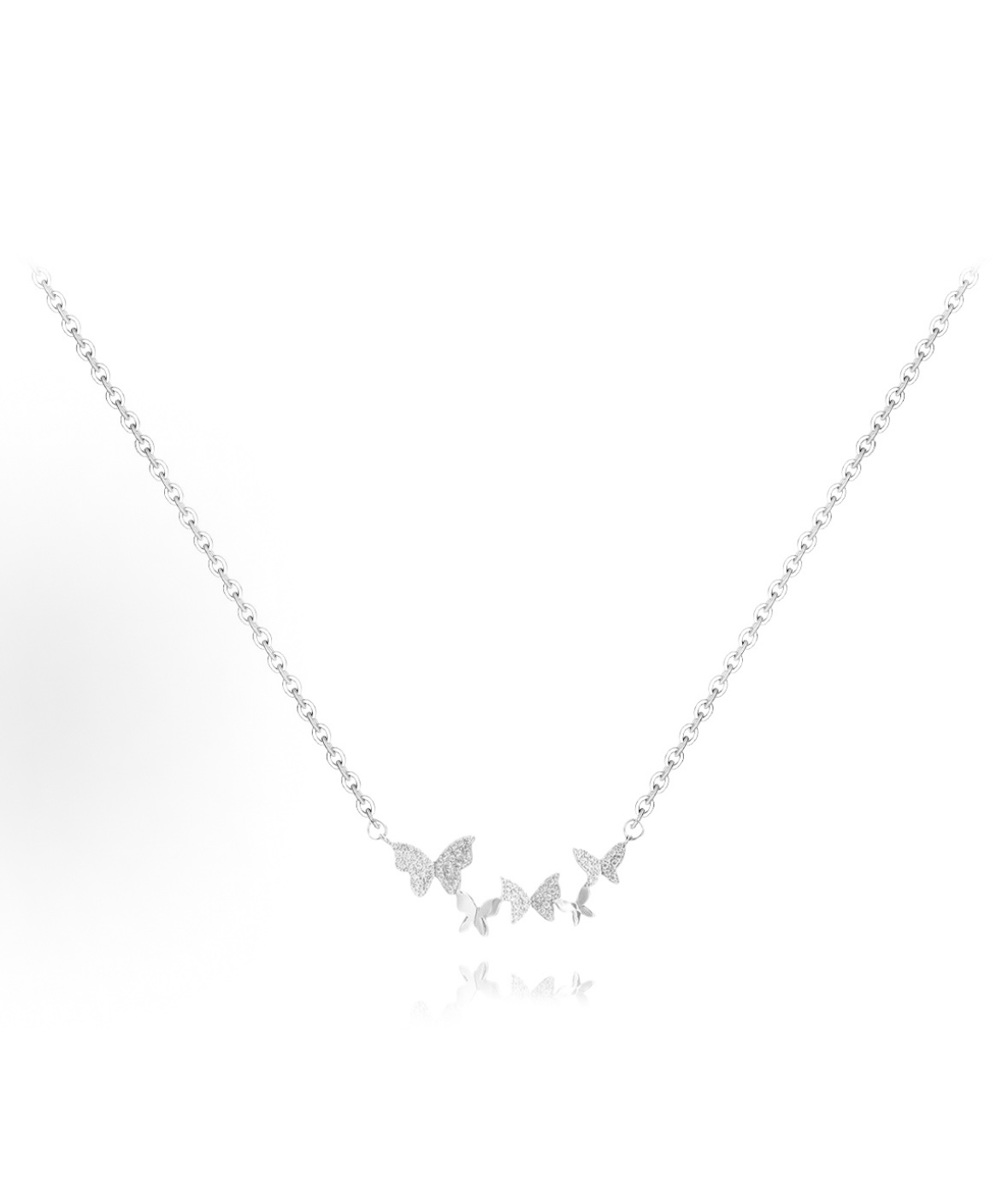Crafted from premium 999 sterling silver (2.5g), this "Wings of Passion" necklace features a graceful cluster of butterflies, each adorned with dazzling cubic zirconia. The design captures the delicate flutter of wings, symbolizing the lightness and beauty of love. Lightweight, hypoallergenic, and effortlessly romantic, it’s the perfect accessory to add a touch of whimsy and glamour to any outfit.