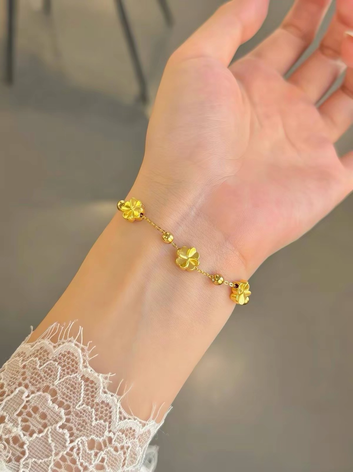 Wear luck on your wrist with this delicate 0.6g gold four-leaf clover bracelet.
