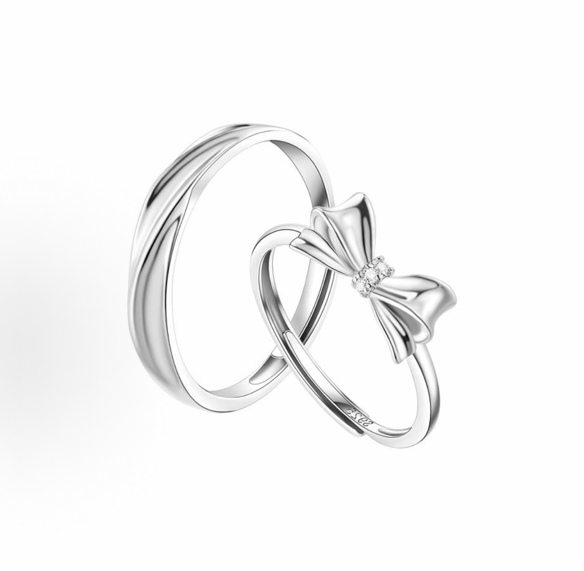 The men’s band features a 2g pure silver minimalist design—smooth, polished, and understatedly elegant, perfect for subtle everyday styling. The women’s ring boasts a 1.5g pure silver bow motif with tiny sparkling accents, adding a sweet, romantic touch to your look.